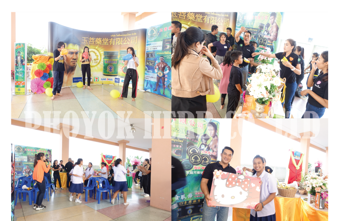 รวมถึงการแจกของที่ระลึกยาหม่องตราโพธิ์หยกสมุนไพร สูตร 2 ให้แก่นักเรียนและผู้ปกครอง