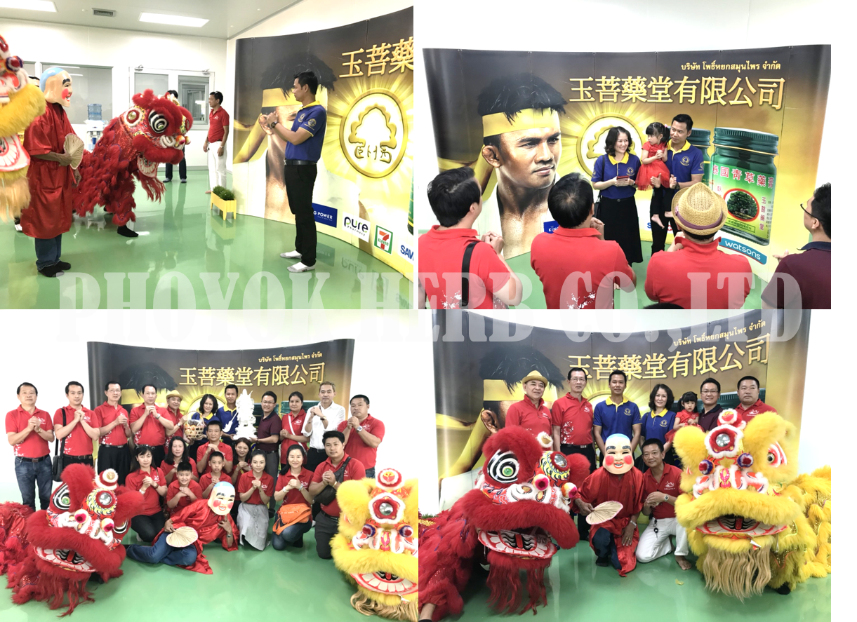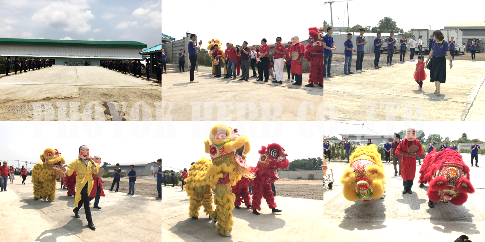 โอกาสเดียวกันนี้ทางคณะสิงโตได้ทำกาเชิดสิงโตไปรอบๆ บริเวณสถานที่ผลิตยาแห่งใหม่