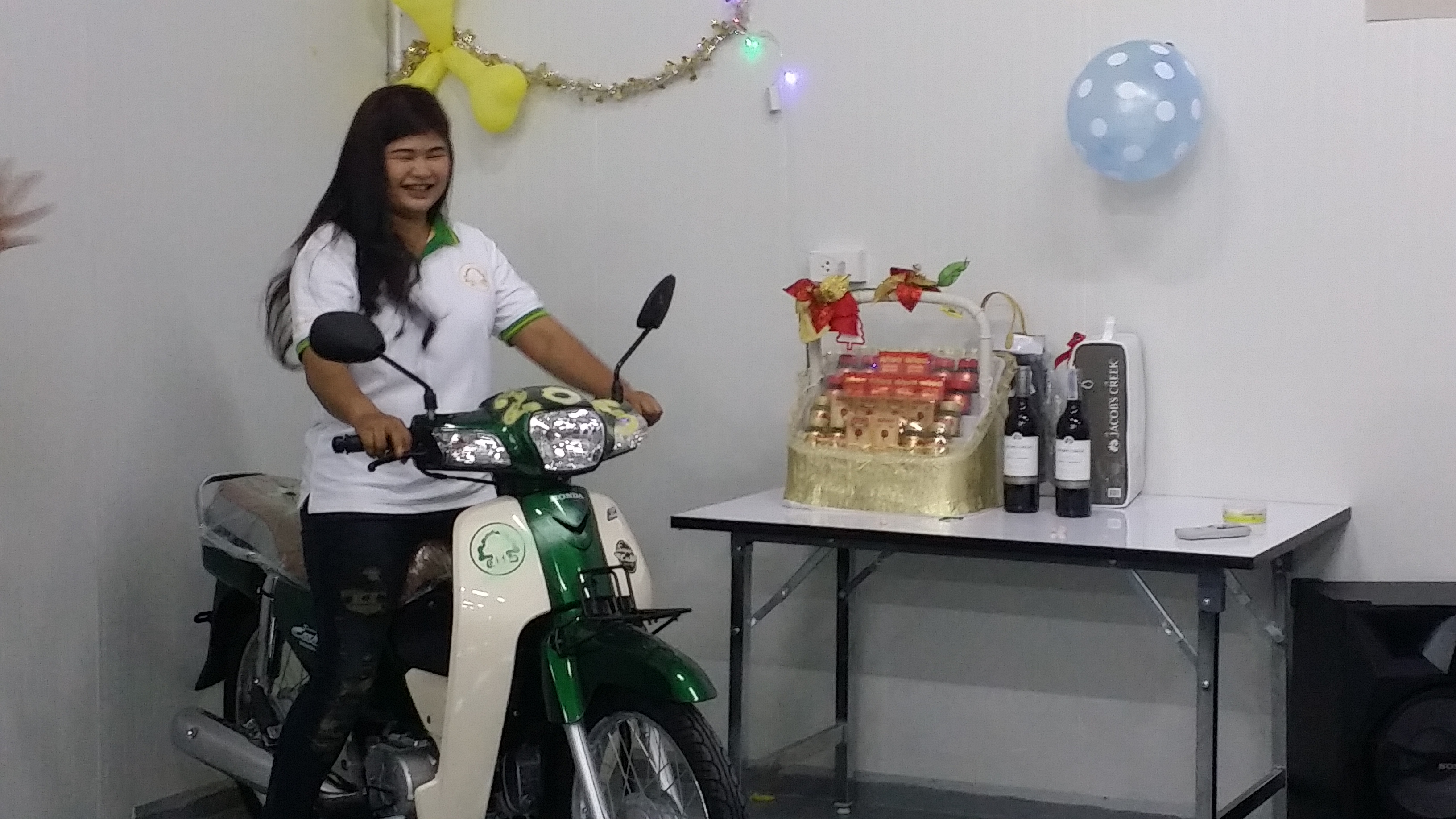 ส่วนผู้โชคดีที่ได้รับรางวัลใหญ่ในค่ำคืนนี้ คือ ... คุณโอ์ หัวหน้าฝ่ายผลิตของเรานั่นเอง